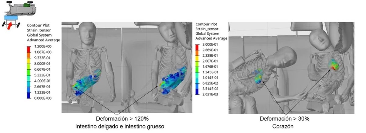 In the area of SAFETY, the main objective has been to understand and analyze the new scenarios of Integrated Safety within mixed traffic scenarios, in which different technological levels of automated driving coexist. It has been essential to design new integrated safety solutions, both experimental and virtual, and with a high degree of predictability, highlighting the use of virtual human models as a basis for the design of potential countermeasures to minimize damage in the event of a lateral accident. Safety improvement was addressed through a holistic approach, including the conceptualization of new structures, vehicle components and new systems for occupant protection, considering the different occupant typologies of future vehicles.